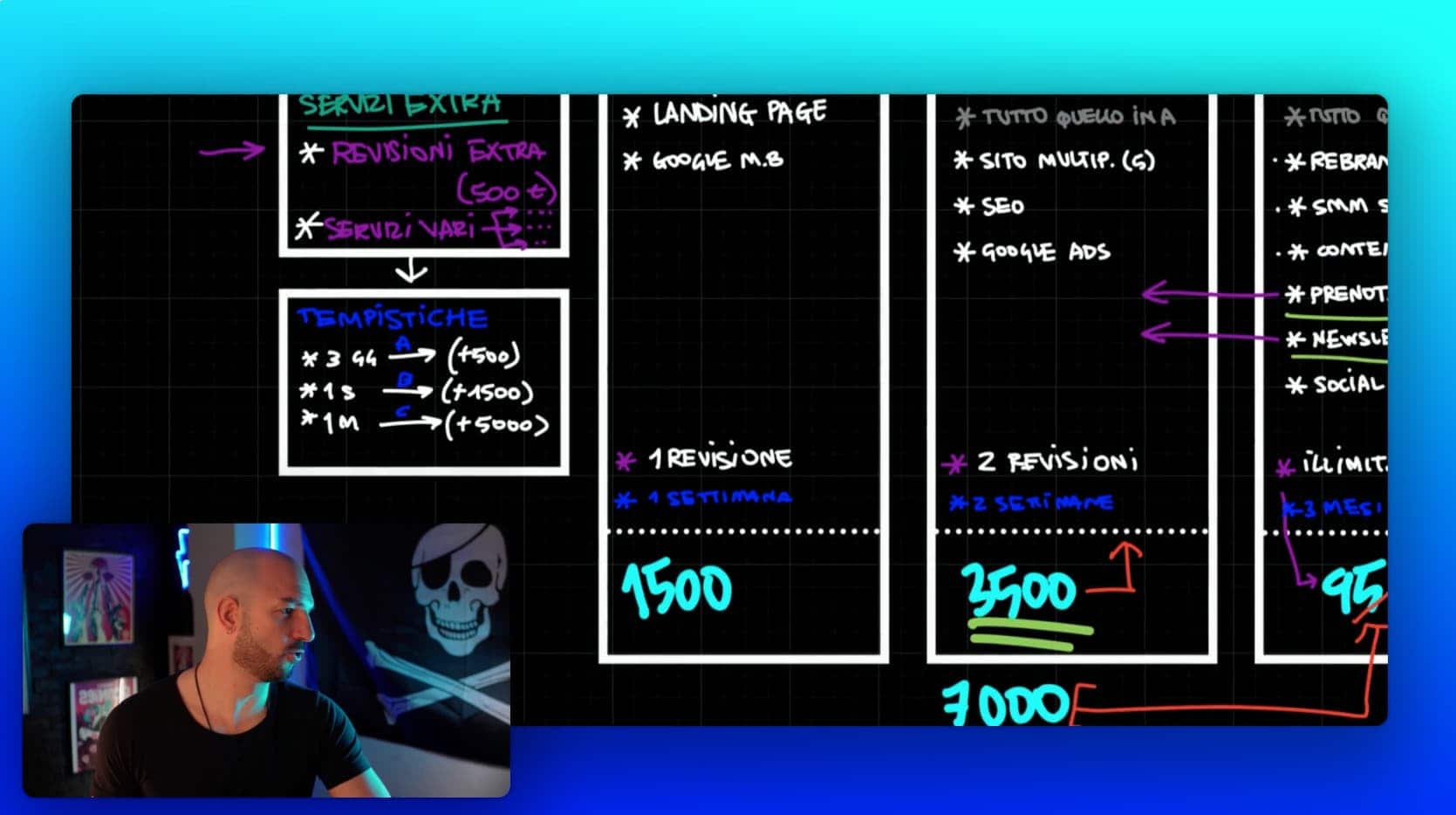 I dati di partenza sono quelli di un freelance caso studio che ha fatto +95% al primo preventivo usando le Tecniche di Pricing del Conquistatore.