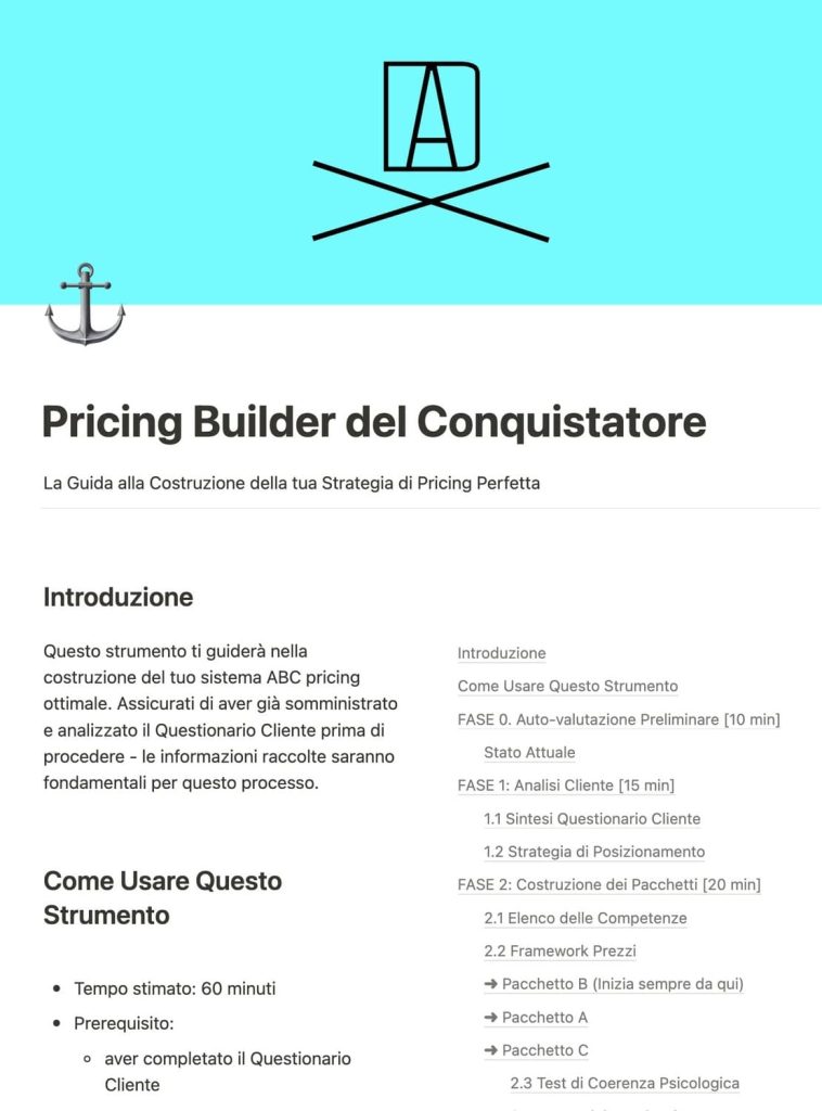 Il Pricing Builder, il Questionario Cliente, il Calcolatore Avanzato e il segreti di numerologia per creare preventivi immediati e irresisitibili.