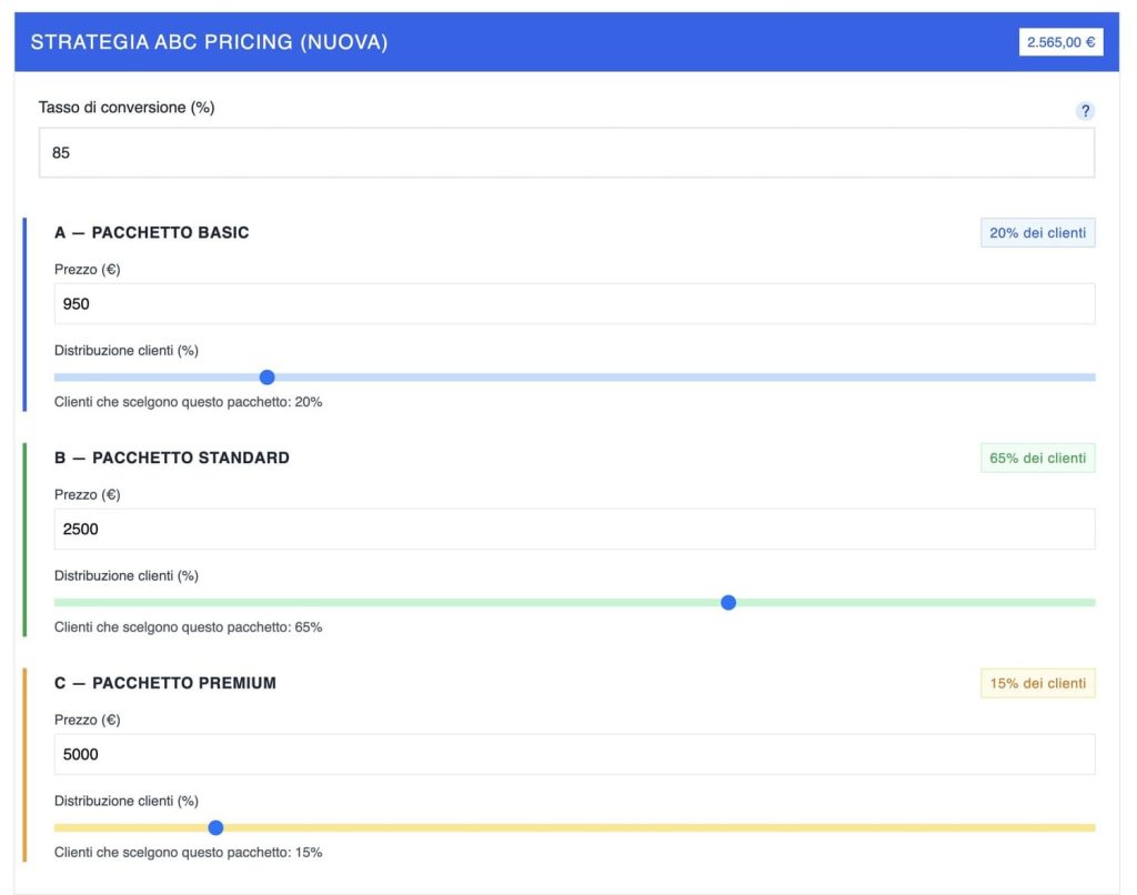 Il Pricing Builder ti permette nel creare la tua nuova strategia di pricing ideale in meno di 60 minuti, guidandoti step by step.