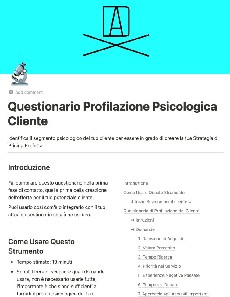 Con il Questionario di Profilazione Psicologica del Cliente avrai finalmente la strada spianata per creare strategie di pricing irresistibili e ultra-remunerative.